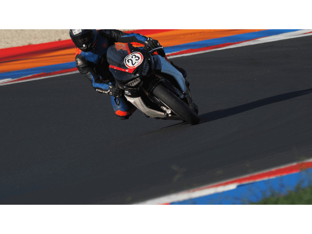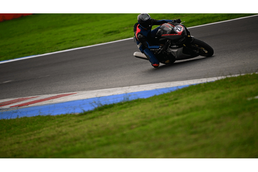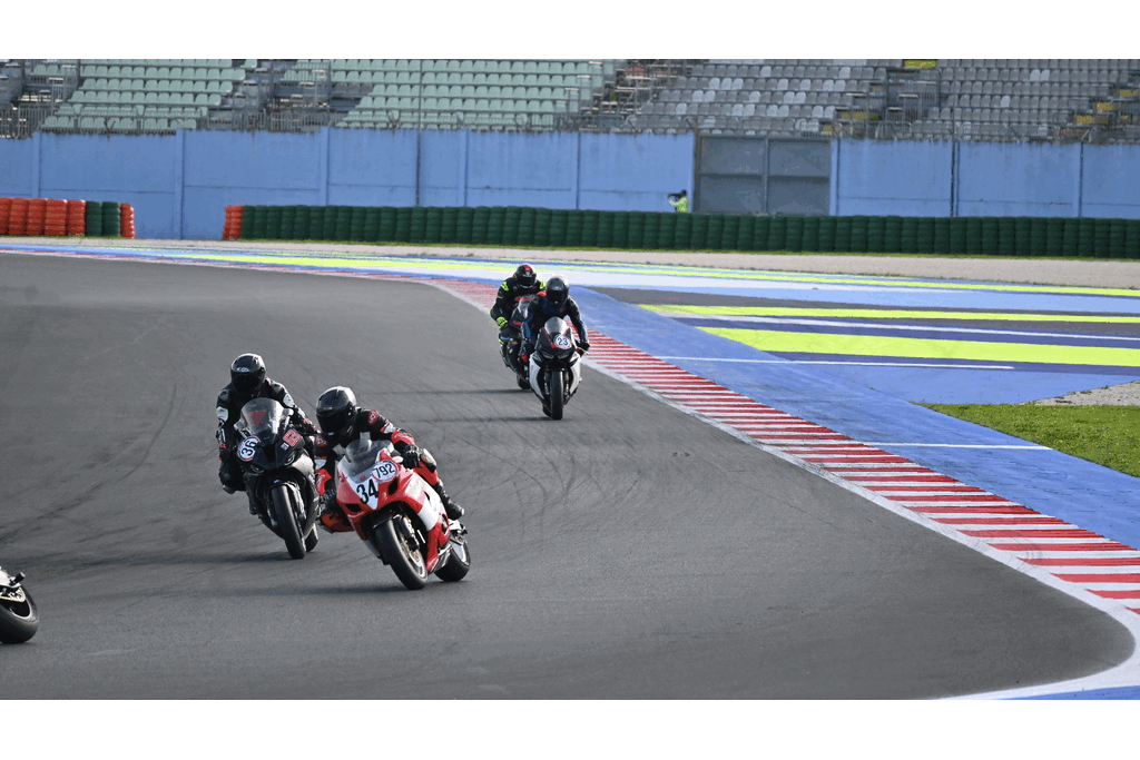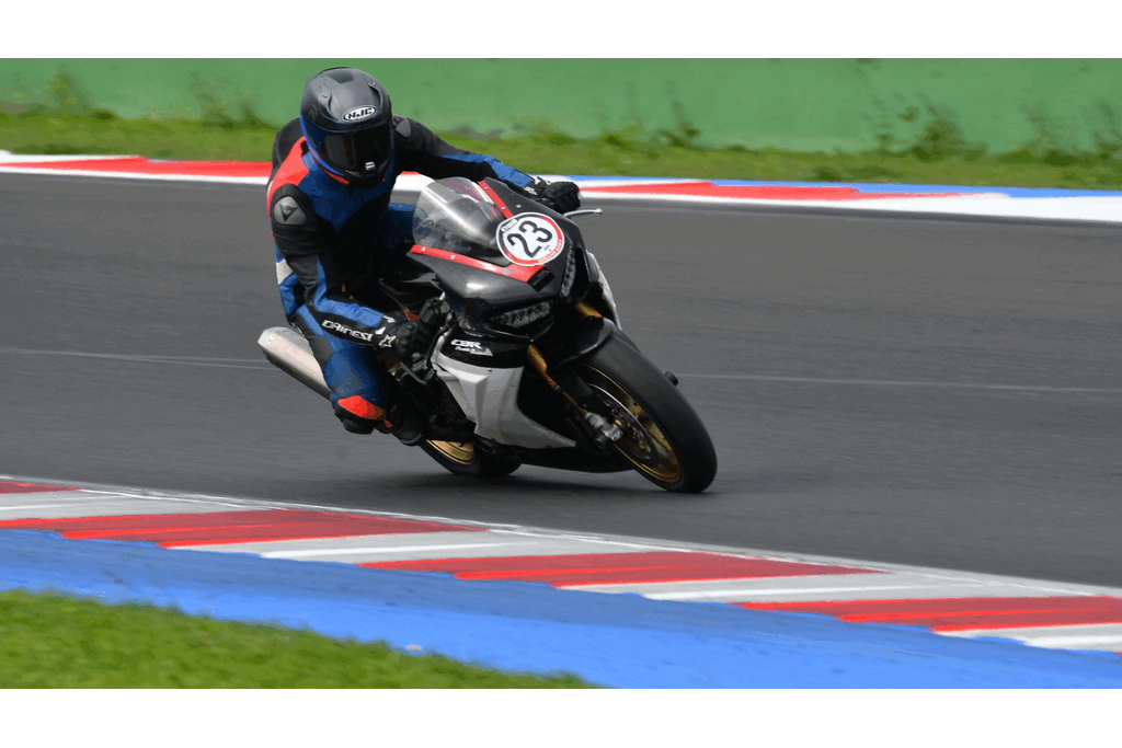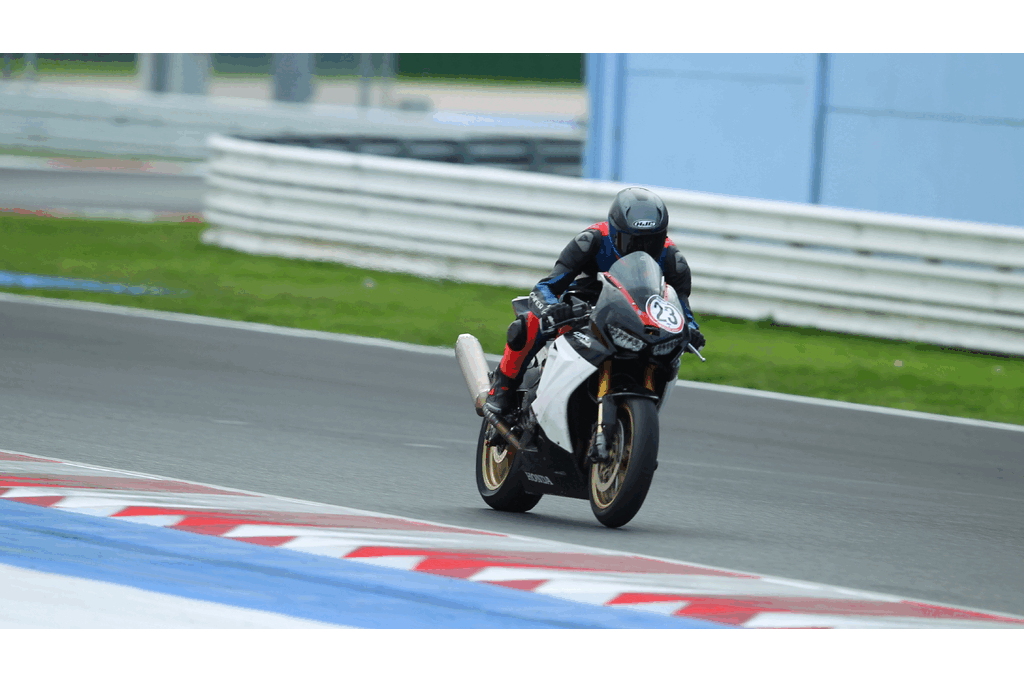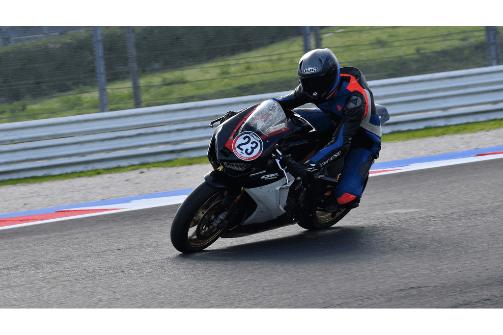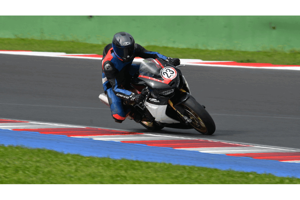 In the first session, my lap timer didn’t work, so I don’t have lap times recorded, but they were similar to those from the second session. The first few laps were all about getting familiar with the track, learning the lines, and adjusting my riding style. This track is fast, with intense braking zones, plus both slow and very high-speed corners.