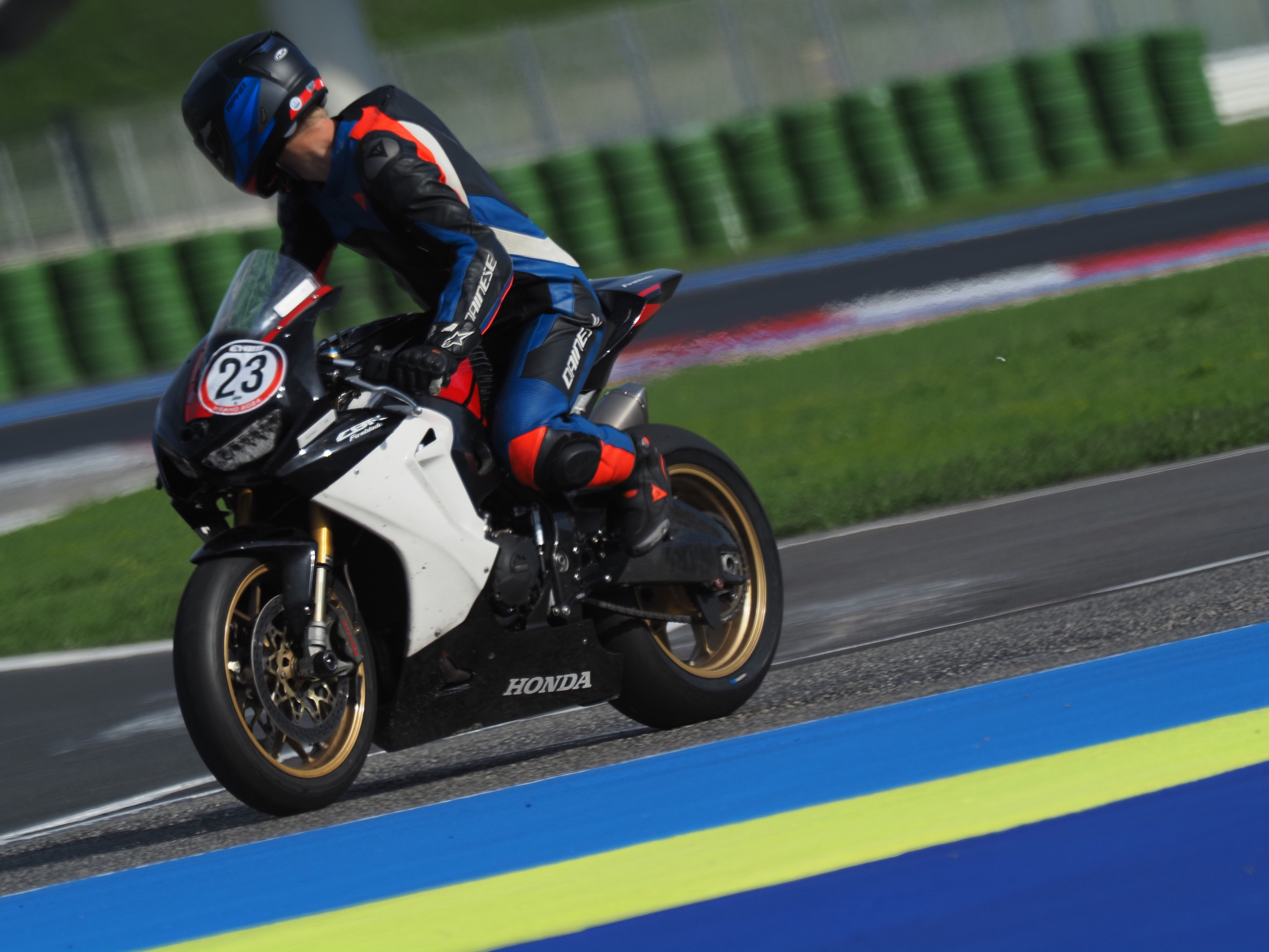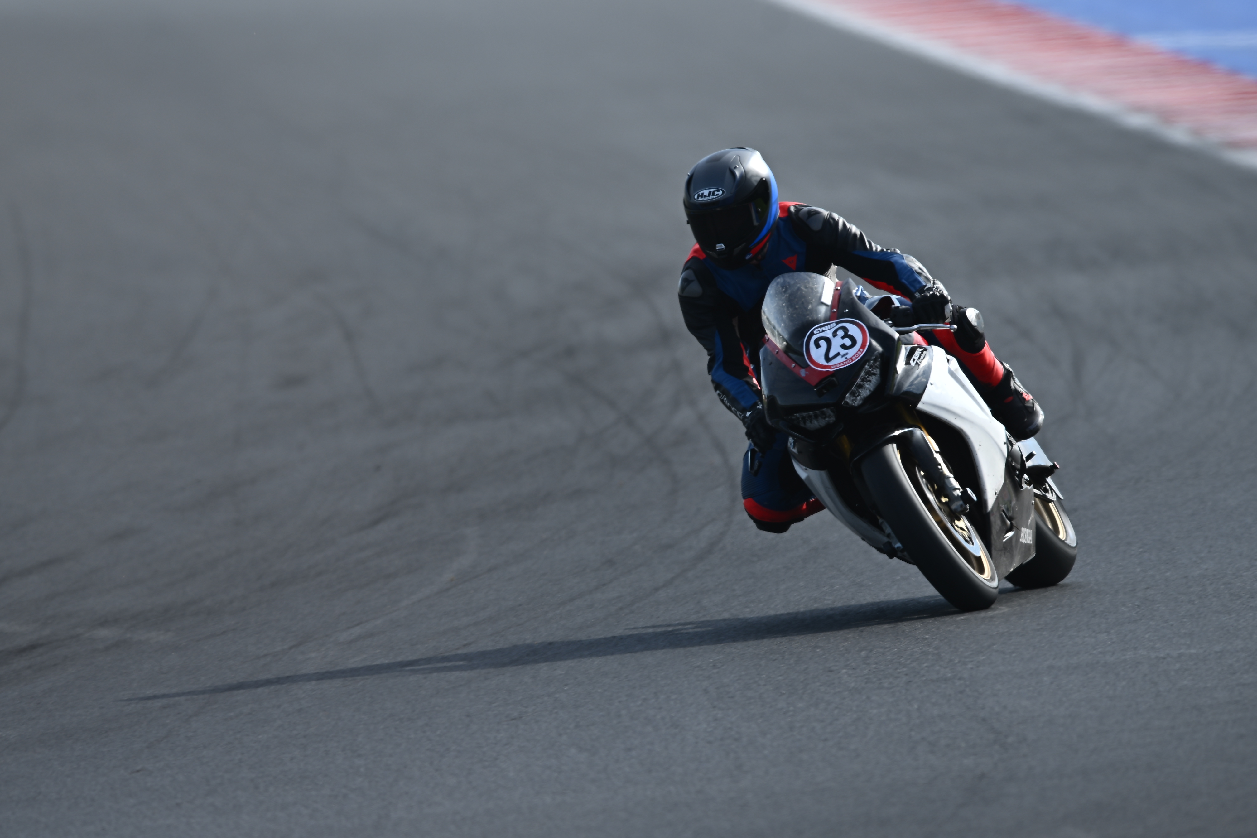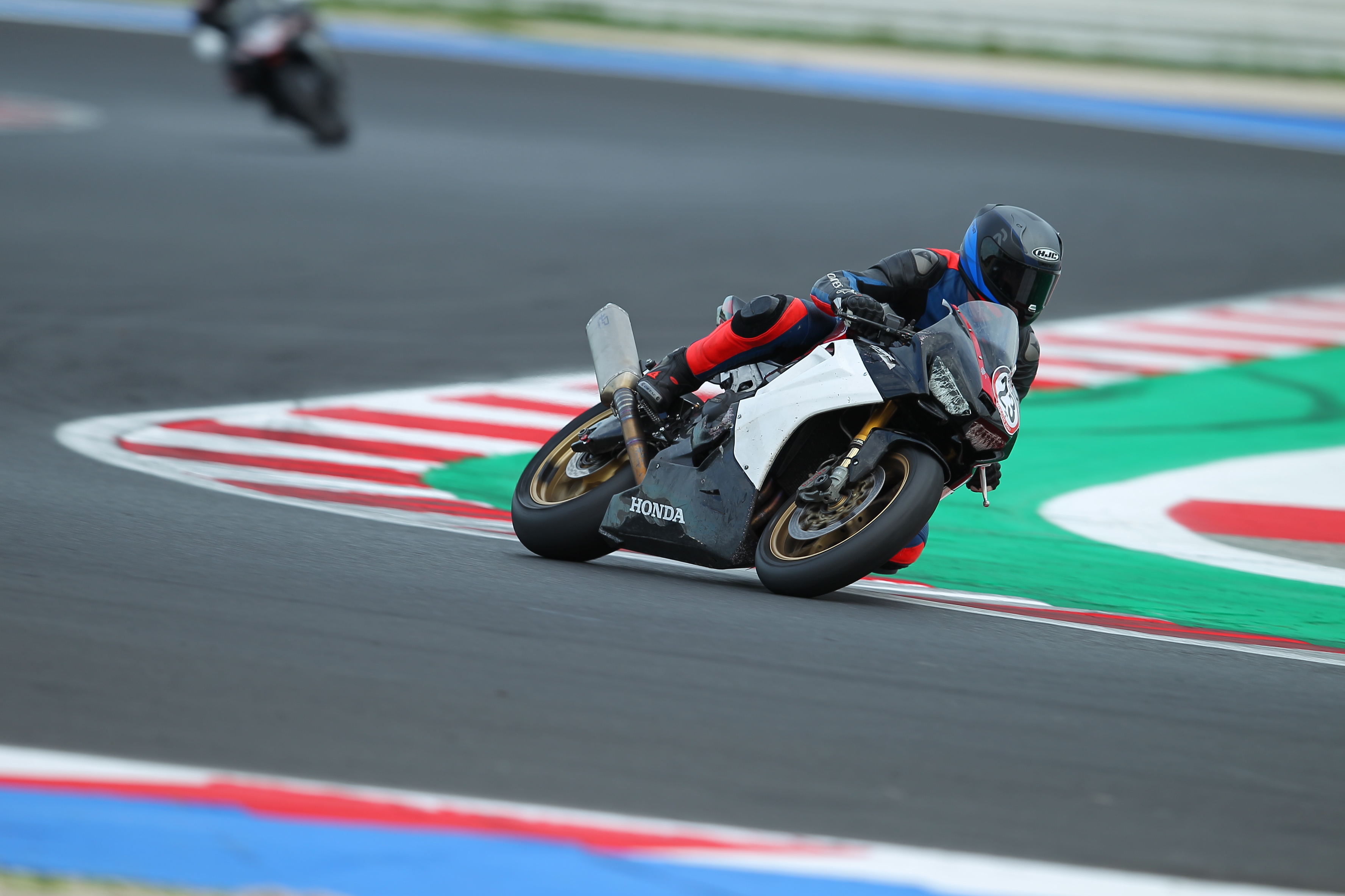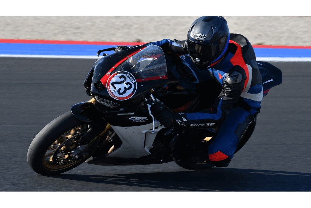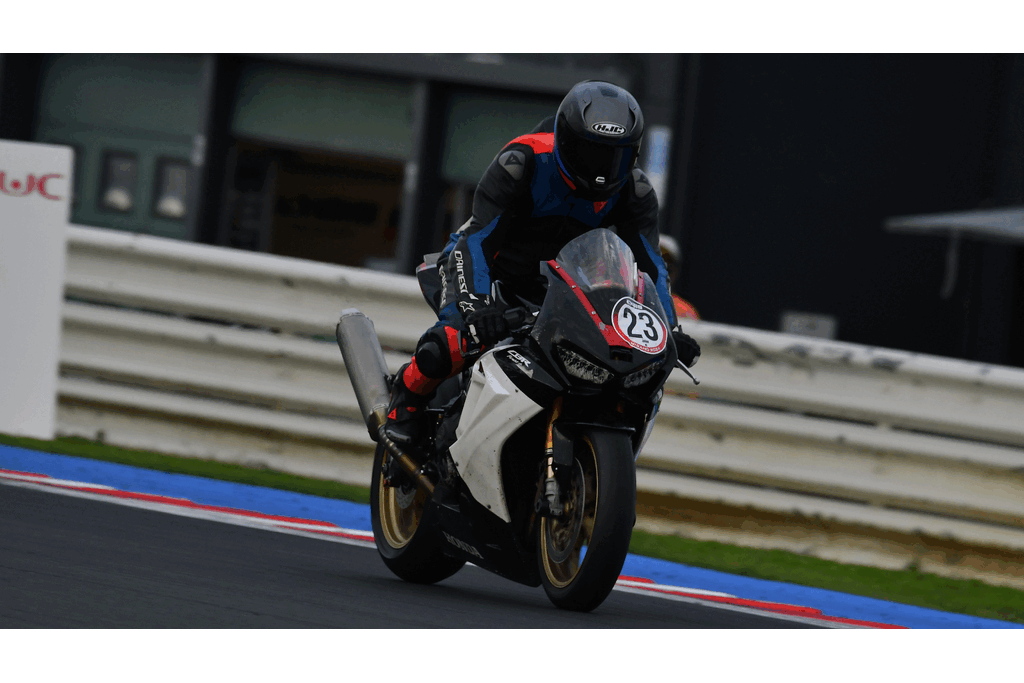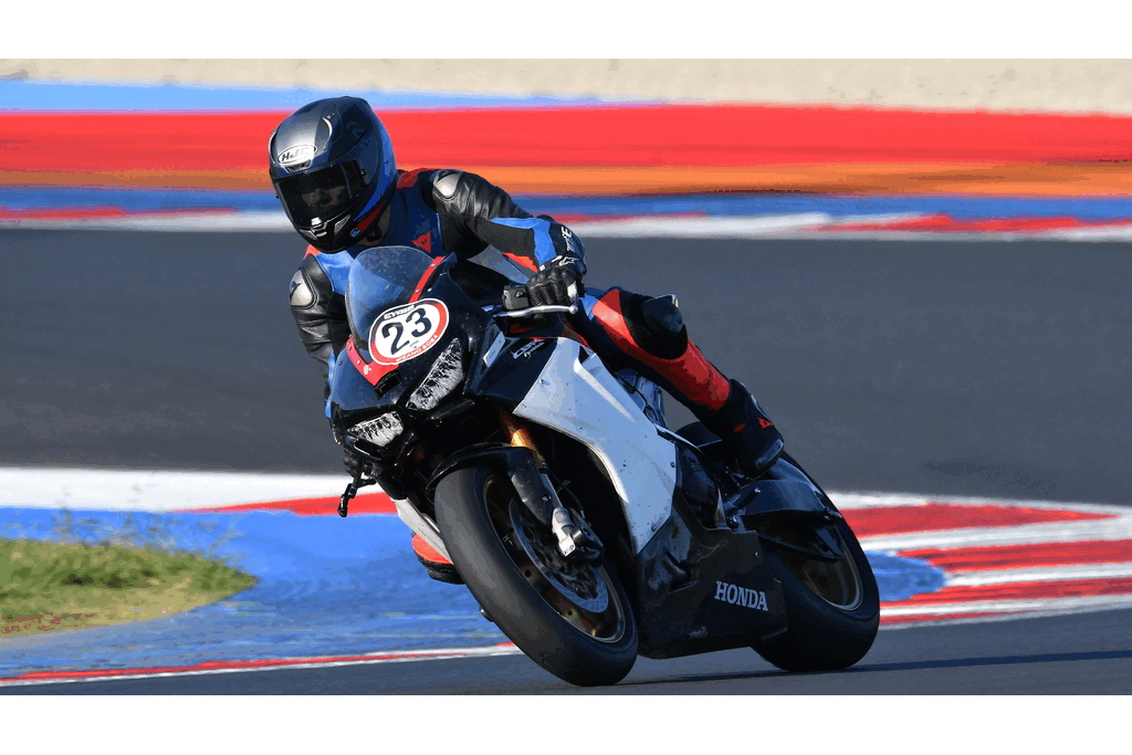 In the first session, my lap timer didn’t work, so I don’t have lap times recorded, but they were similar to those from the second session. The first few laps were all about getting familiar with the track, learning the lines, and adjusting my riding style. This track is fast, with intense braking zones, plus both slow and very high-speed corners.
