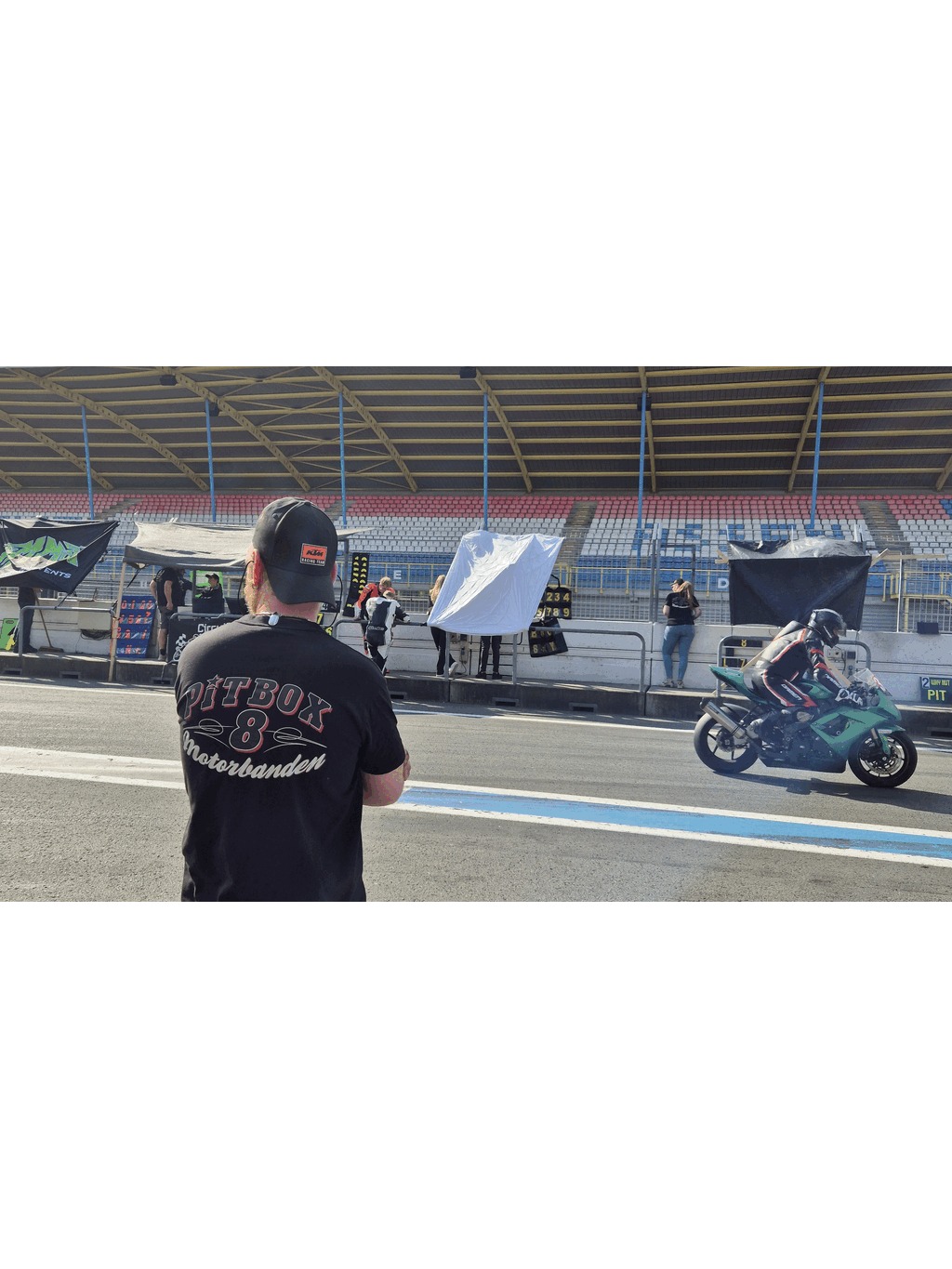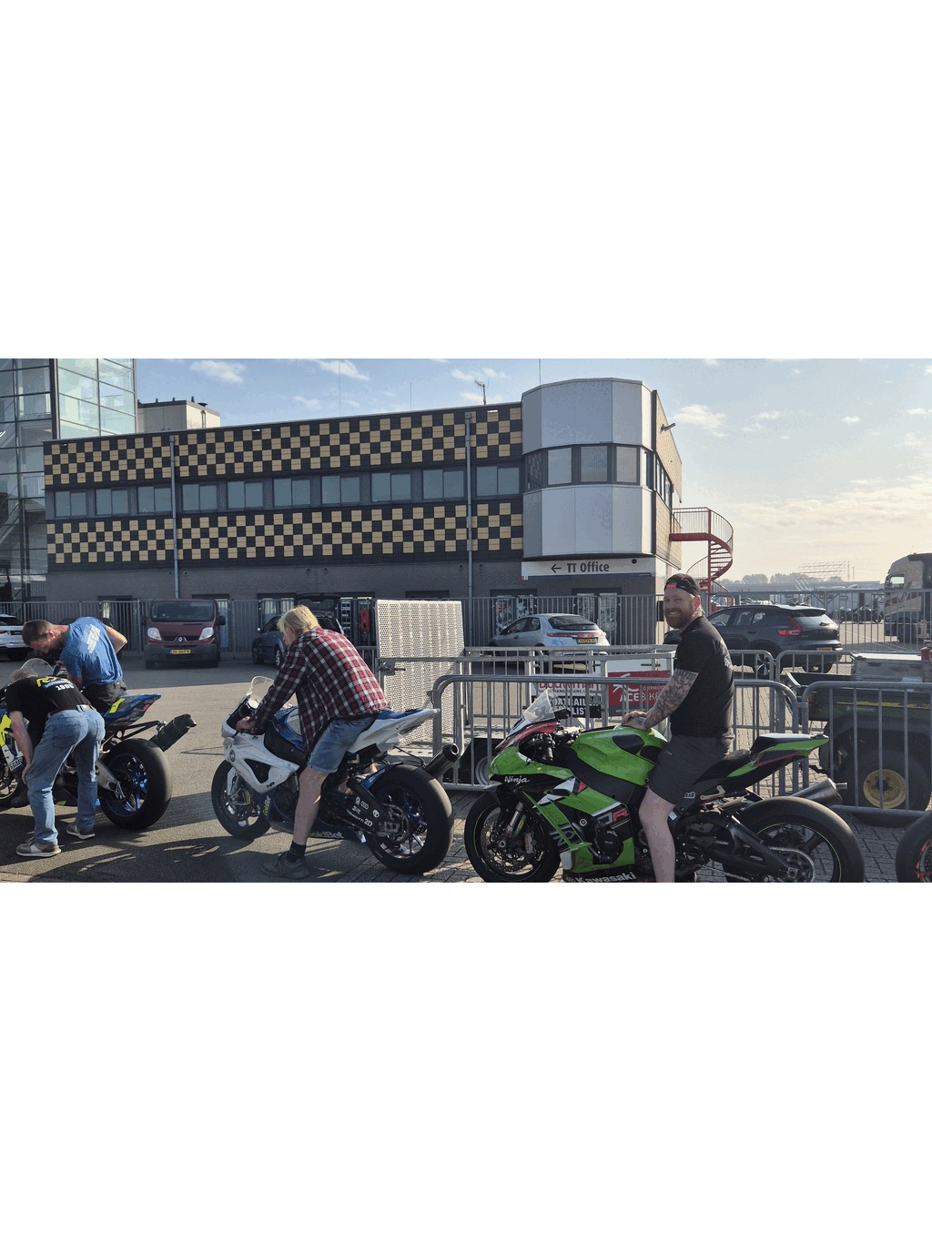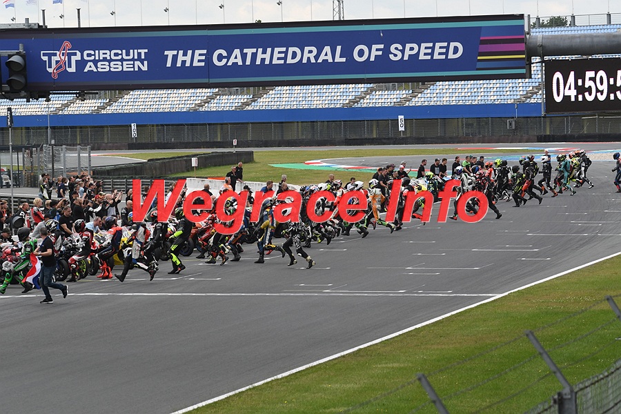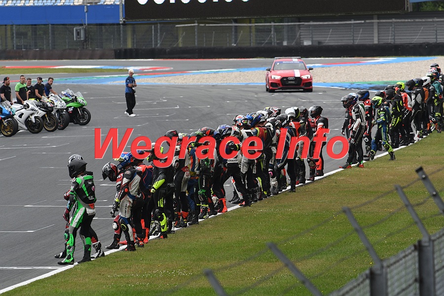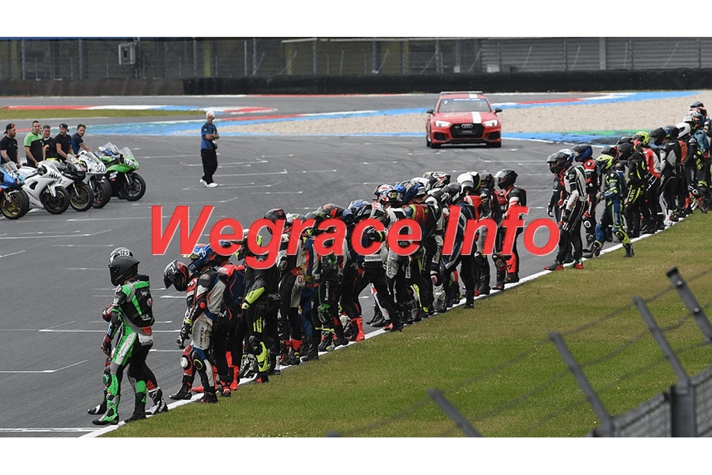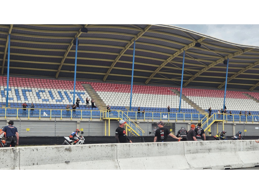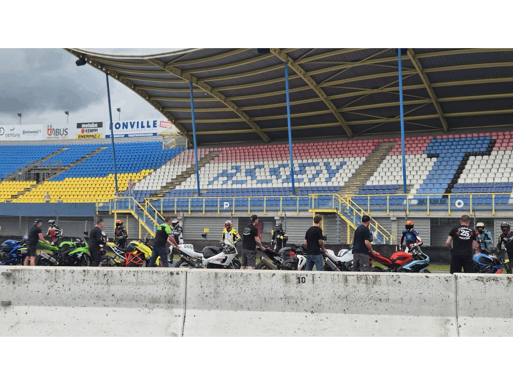 The track marshals forgot to put down the starting positions on the track and it was chaos when all riders arrived. Everybody was wrong and it took quite some time for them to find more or less the right spot. Since our position was almost the same as before we know where to be.