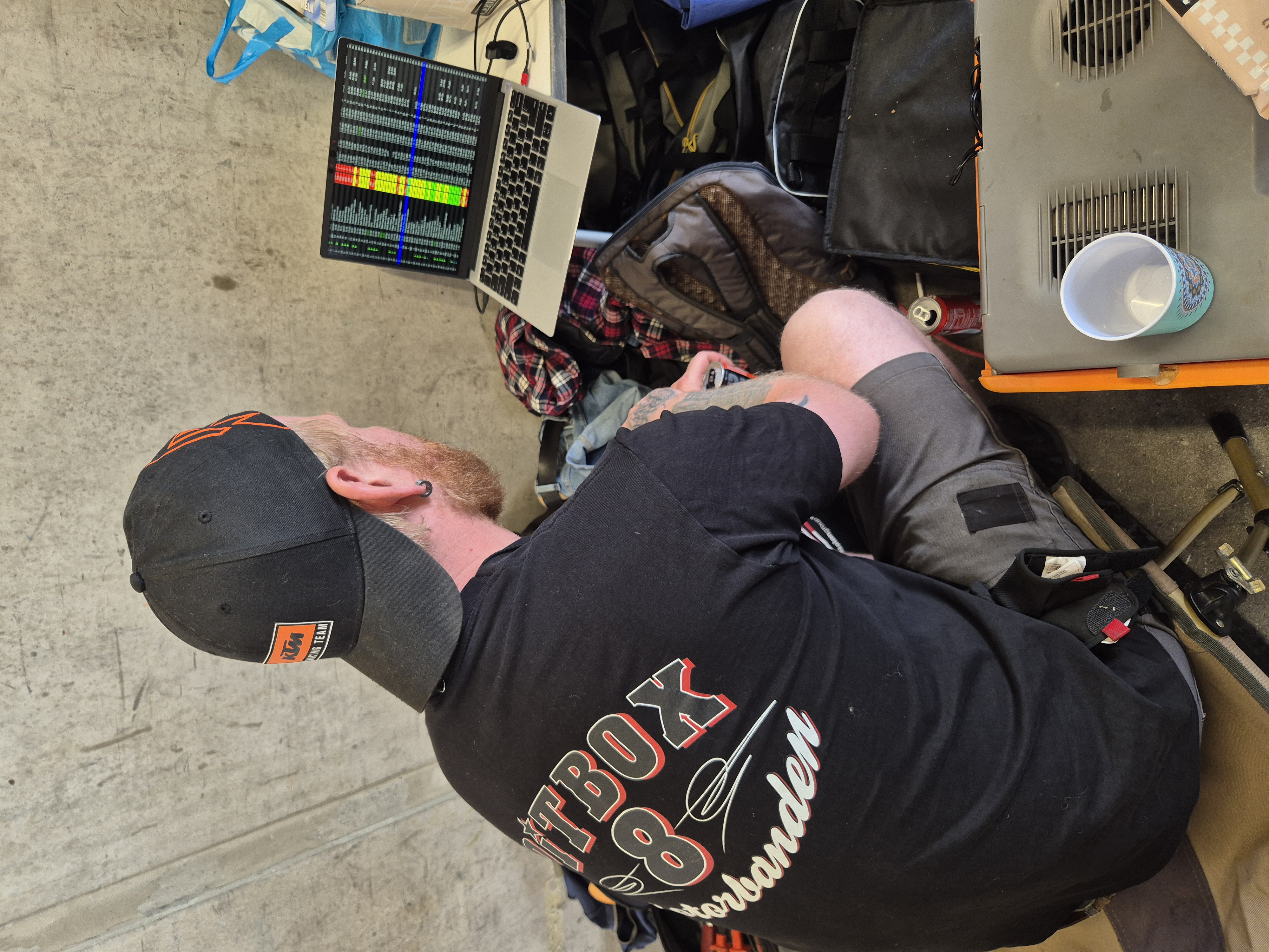 The team was fully complete and everybody was very enthusiastic about the day to come. We had made some changes to the quick release of the transponder, 2 iPads for track position and laptimes at the pitwall and more experience then the last time we tried.